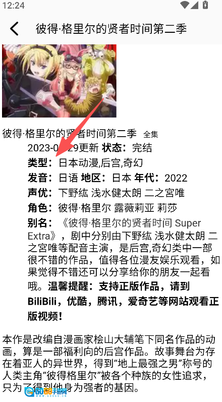 提供资讯查看功能,用户可在番剧详情页面浏览更新状态类型、作品介绍等相关内容。