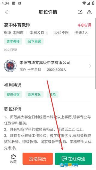进入职位详情页面后,能够查看岗位要求、福利待遇等相关信息,点击【投递简历】或者【在线沟通】按钮,即可完成求职的相关操作。