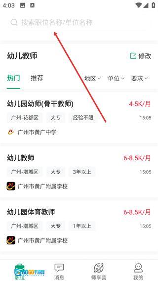 在搜索框里输入你想找的岗位(比如【体育老师】),然后点击右边的【搜索】按钮,就能看到相关职位的搜索结果了。