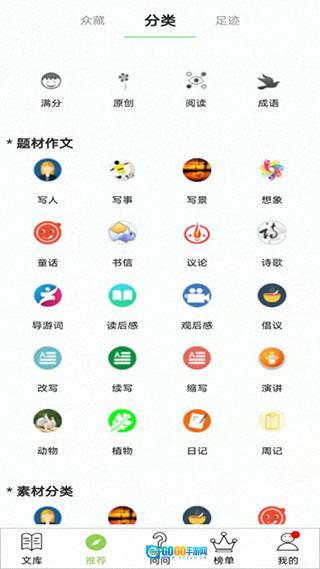 涉及的作文类型多样,能够实时查找到作文类别。