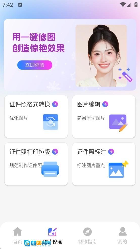 2、图片修理页面集成了证件照格式转换、图片编辑、证件照打印排版、证件照标注等多项功能。
