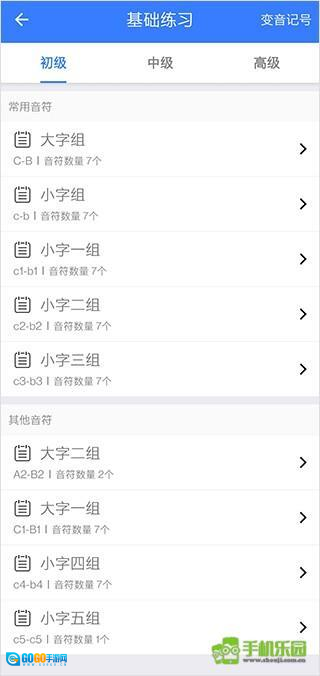 考虑到很多刚接触五线谱的用户面对数量众多的钢琴键时容易不知所措,我们针对性地把基础练习划分成了初级、中级和高级三个阶段。在初级阶段,我们会将每个组别单独提取出来进行练习,这样能帮助用户更好地进行练习和巩固。