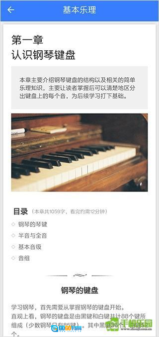 后打开进入,软件内提供了大量的乐理知识可以学习