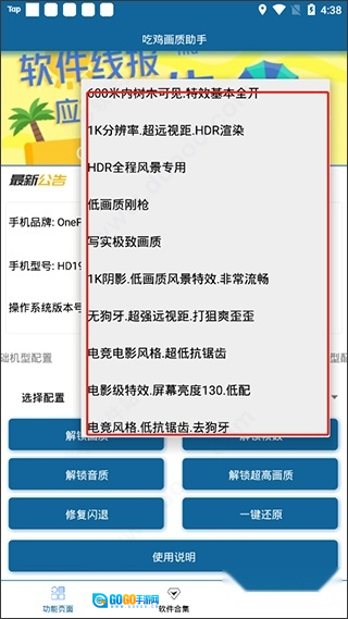 解锁更多的画质程度,一键选择喜欢的画质功能;