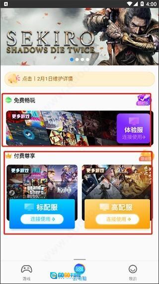 另外,在中主要提供了免费畅玩和付费尊享两种模式。