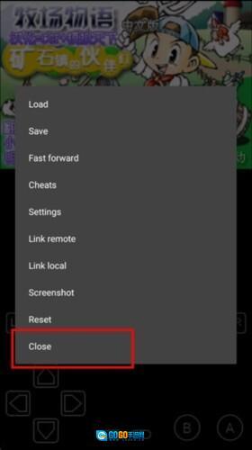 最后在弹出的菜单里,点击【Close】按钮就能关闭游戏,回到模拟器的游戏列表页面。