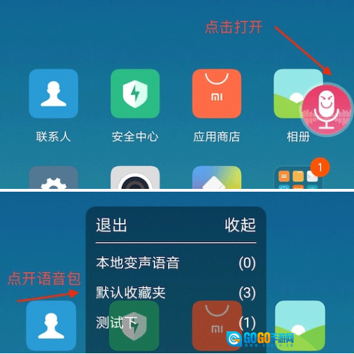 按下Home键回到桌面,点击右侧的悬浮球,打开语音包并选择播放。