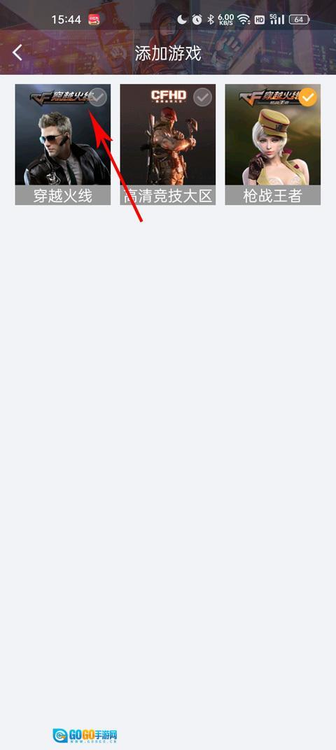 在添加游戏角色的页面里,从穿越火线、高清竞技大区、枪战王者这三款游戏中,挑选你想要添加的那款游戏对应的角色进行添加操作。