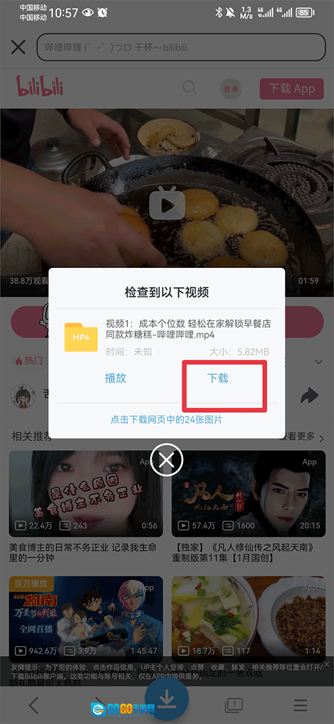 然后当你点击视频后,系统就会自动为你解析该视频,点击即可将此视频文件保存下来。
