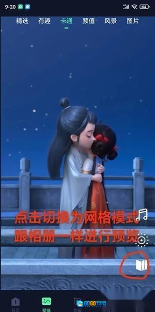要是你希望能像在相册里挑选视频那样来选择壁纸,那就可以切换成网格模式。