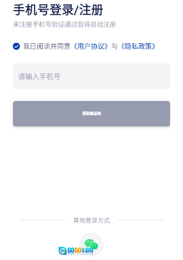 最后用手机号及验证码或用微信登录即可。
