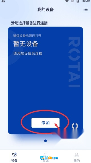 先并安装荣泰智能,进入主页面后首先添加设备。