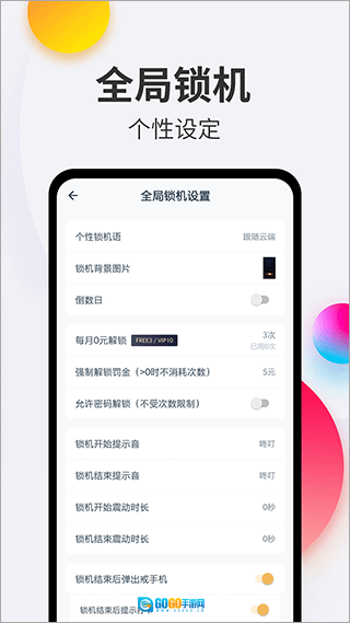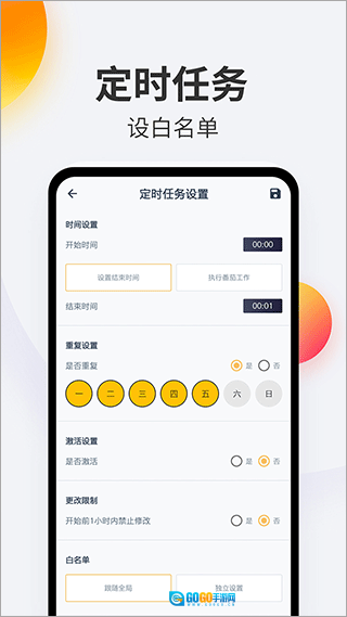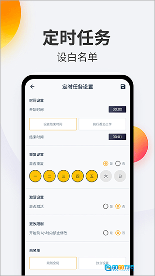 定时锁机功能可在设定时间将手机牢牢锁定,有效防止因熬夜而沉迷手机的情况;通过设置睡眠计划,到了预定时间手机便会自动锁机,帮助用户养成早睡早起的好习惯,保持良好的精神状态。