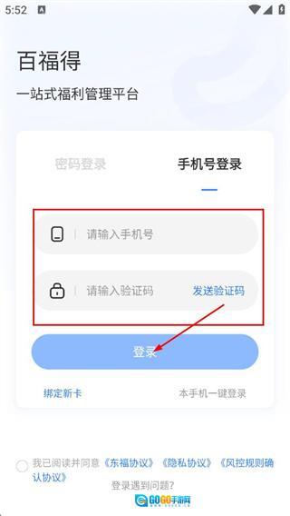 在手机号登录界面,输入手机号和验证码后点击登录按钮,即可完成账号登录操作。