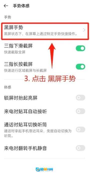 然后点击【黑屏手势】
