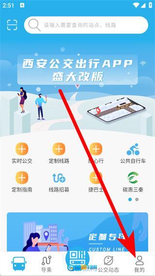 打开西安公交出行,在首页点击底部我的。