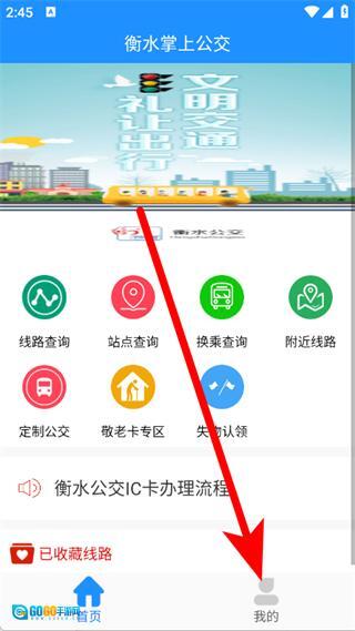 打开衡水掌上公交应用后,点击首页底部的“我的”选项,即可进入对应的页面。