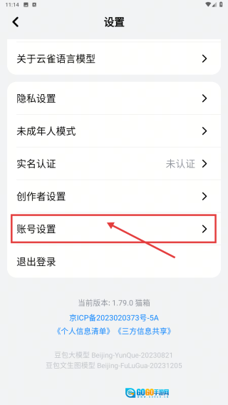 在设置页面,点击账号设置选项,进入账号管理界面。