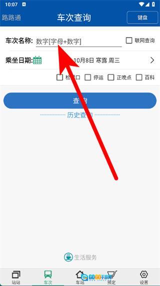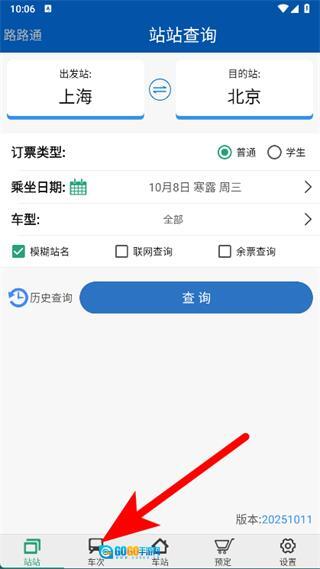 打开路路通应用后,找到底部导航栏中的“车次”选项并点击,即可进入车次查询页面。