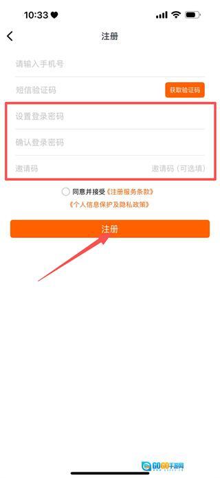 设置登录密码,再次确认该密码,随后点击注册按钮,即可完成整个注册流程。