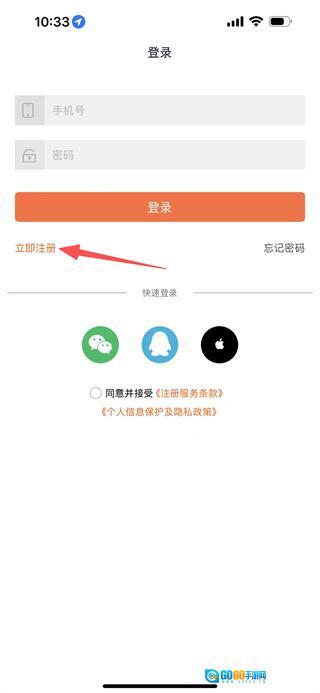 在登录页面,点击立即注册,进入注册页面。