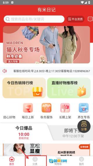 打开电商类首页后,点击底部的分类选项,即可进入分类页面。