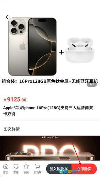 在手机商品列表页面,挑选你有意向购买的手机商品,接着进入该商品的详情页面。