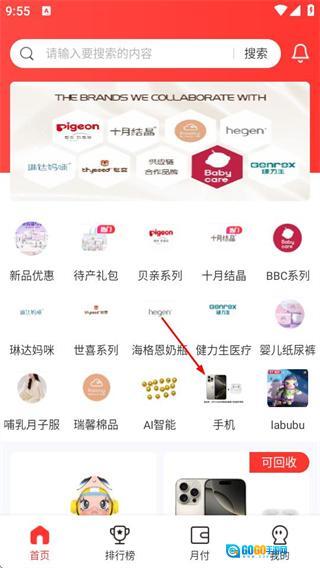 在宝鱼商城首页,点击手机分类后,即可进入手机商品列表页面。