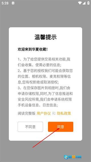 当温馨提示弹窗出现时,先仔细阅读其中的隐私政策内容,随后点击同意按钮即可。
