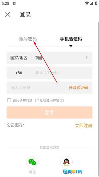 在华夏收藏的首页,点击底部的“我的”选项,就能进入到登录相关的页面。
