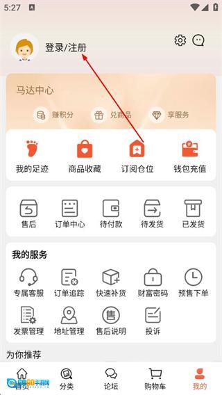 在个人中心页面,点击顶部的登录/注册选项,进入登录页面。
