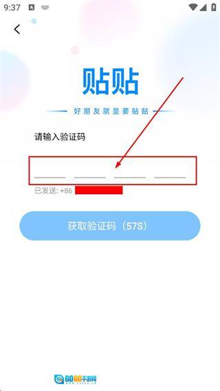 在验证码输入界面,填入已获取的验证码,以完成登录流程。