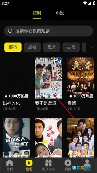 在阅瞬圈首页,点击底部的剧场选项,进入短剧分类页面。