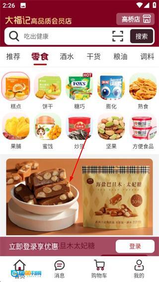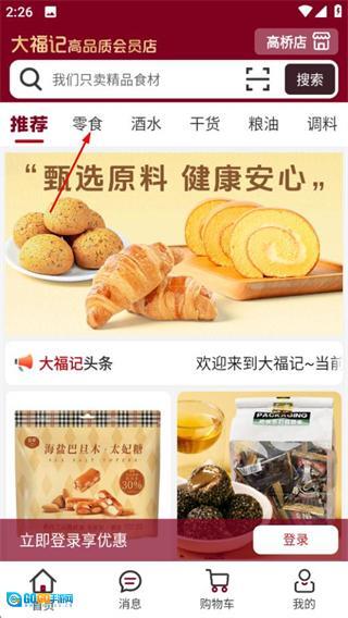 在大福记会员店的首页,找到并点击零食分类的选项,即可进入零食专区页面。