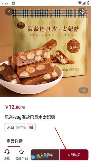 在零食页面,点击海盐巴旦木太妃糖这类目标商品,即可进入商品详情页。