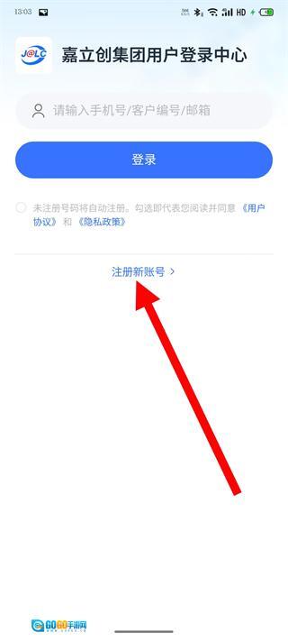 在登录中心页面,点击“注册新账号”按钮,即可进入注册新账号的页面。