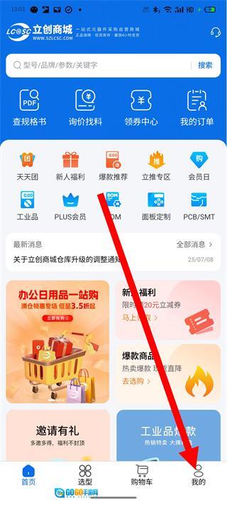 在立创商城首页,点击底部的“我的”按钮,即可进入个人页面。