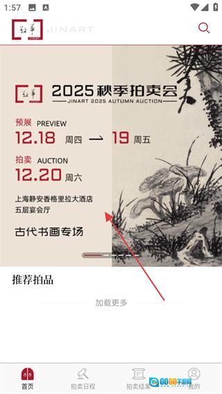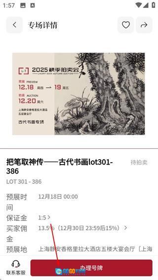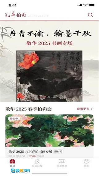 在敬华首页,点击古代书画专场的活动卡片,即可进入该专场的详情页面。
