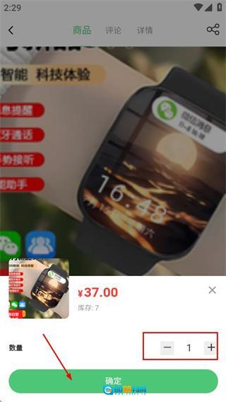 在商品详情页面选定购买数量后,点击确认按钮即可完成商品的购买流程。