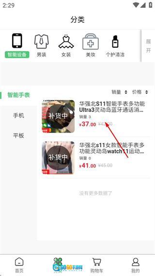 在分类页面选定目标商品类别后,即可进入对应的商品列表页面。