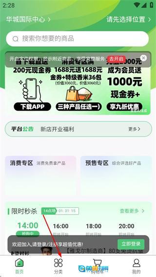 在绿农食果首页点击底部分类选项,进入分类页面。