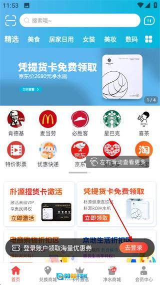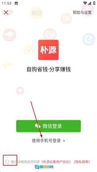 在朴源云集首页,点击去登录可进入登录选择界面。