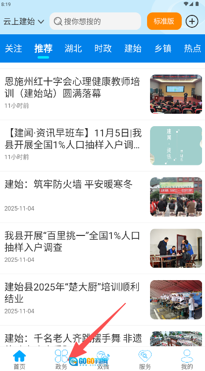 在首页底部的导航栏里,找到并点击“政务”选项,即可进入政务服务平台的主界面。