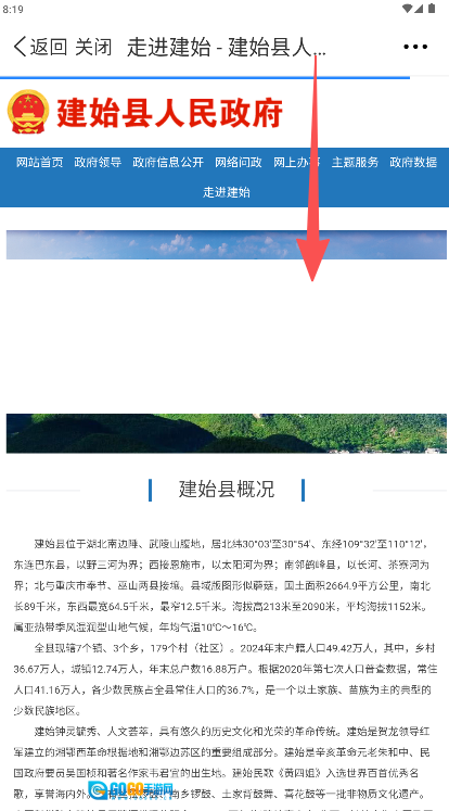 页面将自动跳转至“建始县人民政府”网站的建始县概况板块,您可以通过上下滑动屏幕来浏览更详细的内容。