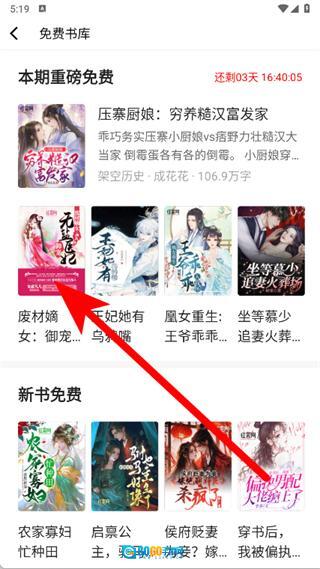 2、在免费书库中,选择想阅读的小说。