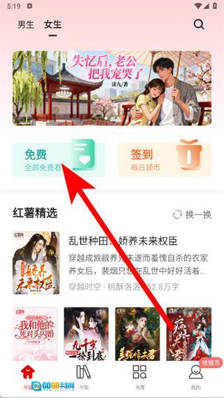 1、打开红薯小说,点击免费,进入免费书库。