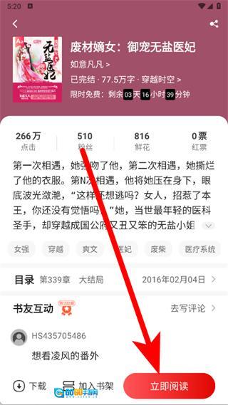 3、进入小说详情页后,点击立即阅读开始阅读。