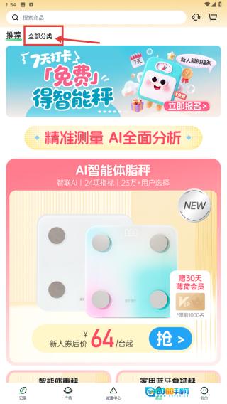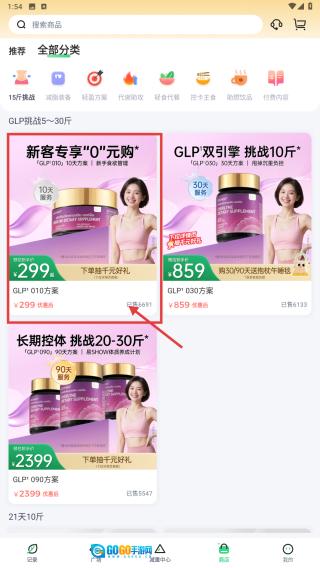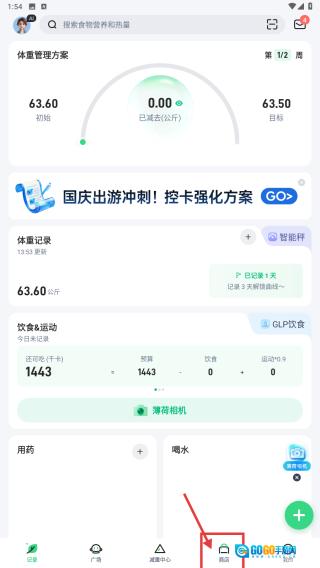 1、启动体重管理类应用,点击底部的商品选项,进入商品商城页面。