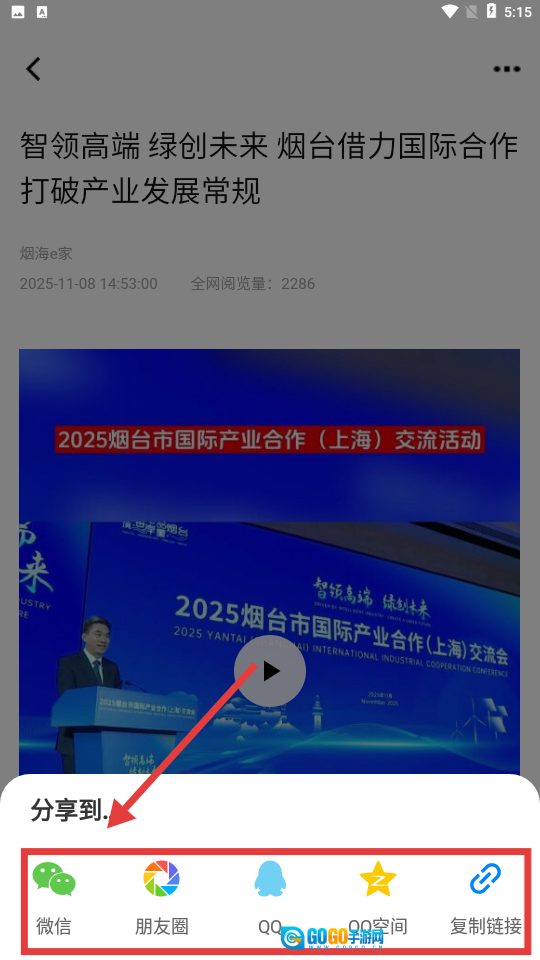 点击右下角【分享】按钮,弹出分享平台列表。