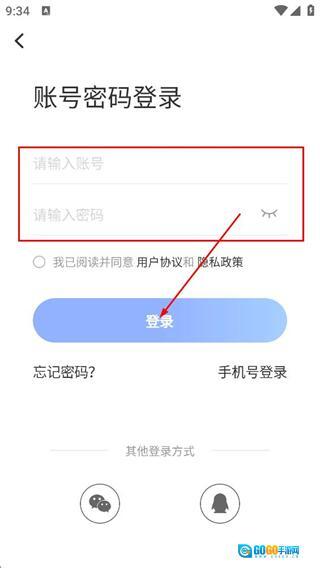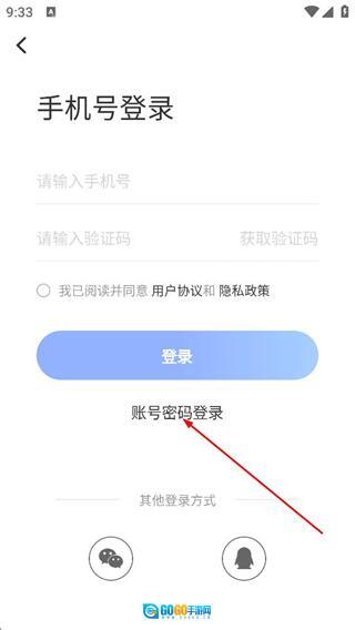 在登录页面,选择账号密码登录的选项,就能切换到对应的登录界面。